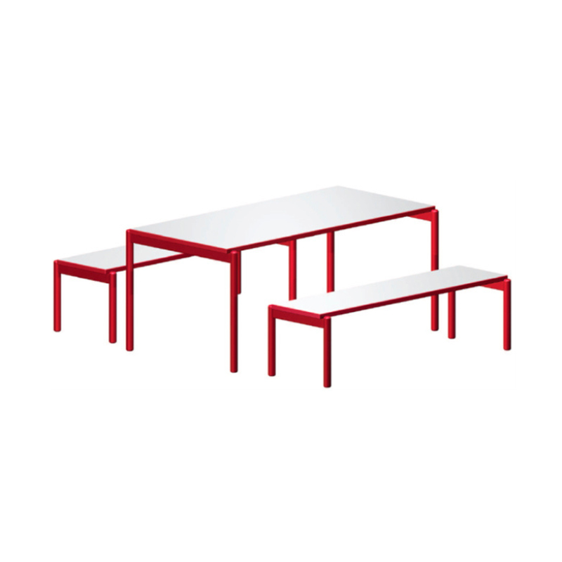 Conjunto de mesa e 2 bancos para refeitório – MBR-02 (VERMELHO)